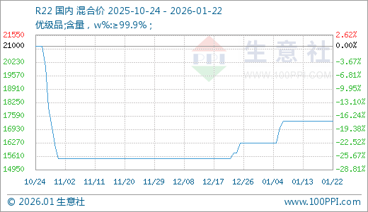 01月22日R22价格17333.33元/吨 30天上涨10.05%
