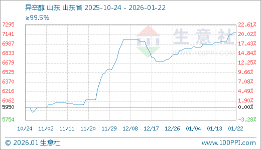 01月22日异辛醇7166.67元/吨 60天上涨17.81%