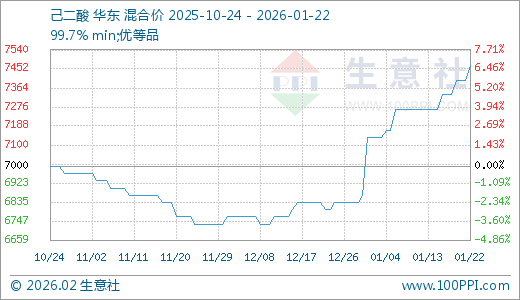 01月22日己二酸7466.67元/吨 60天上涨10.34%