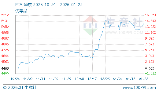 01月22日PTA价格5098.75元/吨 60天上涨10.31%
