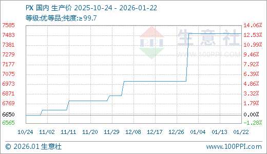 01月22日PX价格7500.00元/吨 60天上涨10.29%
