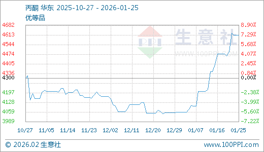 01月25日丙酮4612.50元/吨 5天上涨3.36%