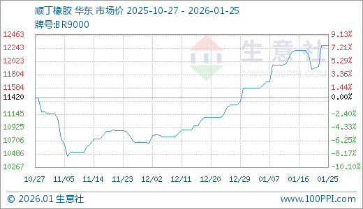 01月25日顺丁橡胶12280.00元/吨 5天上涨3.28%