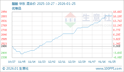 01月25日醋酸2903.33元/吨 60天上涨14.45%