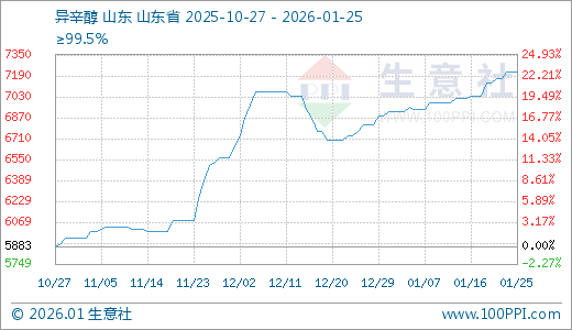 01月25日异辛醇7216.67元/吨 60天上涨11.03%