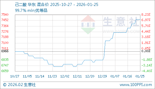 01月25日己二酸7466.67元/吨 60天上涨10.89%
