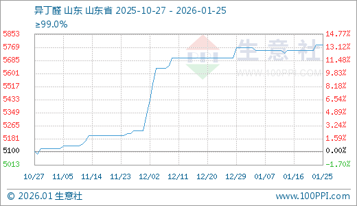 01月25日异丁醛5783.33元/吨 60天上涨10.86%
