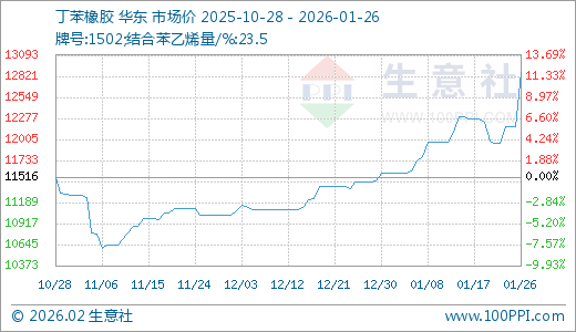 01月26日丁苯橡胶12866.67元/吨 5天上涨7.67%