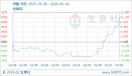01月26日丙酮4800.00元/吨 5天上涨6.84%