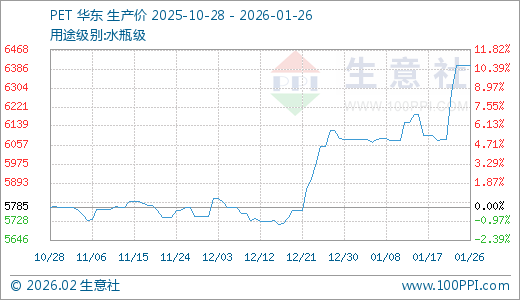 01月26日PET价格6400.00元/吨 5天上涨5.22%