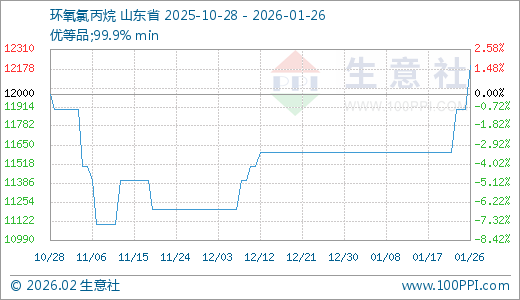 01月26日环氧氯丙烷12200.00元/吨 5天上涨5.17%