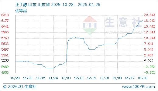 01月26日正丁醇6200.00元/吨 10天上涨5.38%