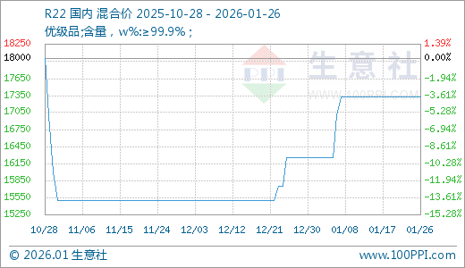 01月26日R22价格17333.33元/吨 60天上涨11.83%