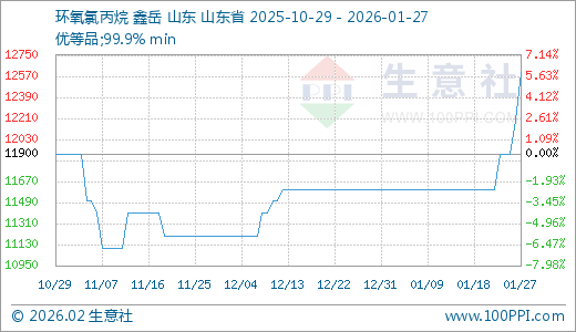 01月27日环氧氯丙烷12600.00元/吨 5天上涨8.62%