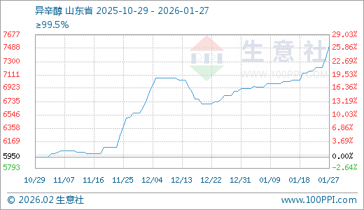 01月27日异辛醇7520.00元/吨 5天上涨4.93%