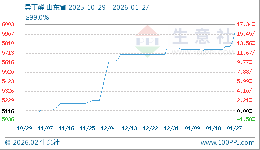 01月27日异丁醛5923.33元/吨 5天上涨3.01%