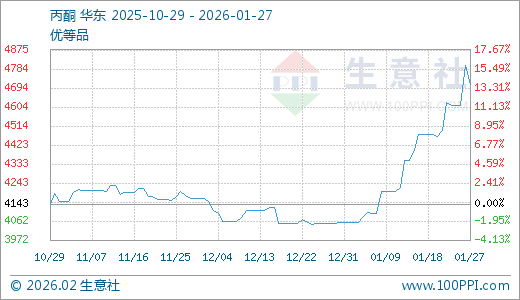 01月27日丙酮4712.50元/吨 10天上涨5.31%