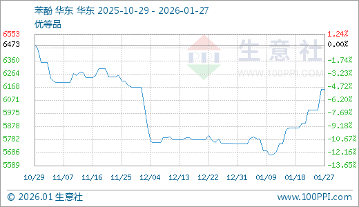 01月27日苯酚6150.00元/吨 15天上涨8.04%