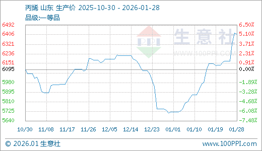01月28日丙烯6411.00元/吨 5天上涨3.89%
