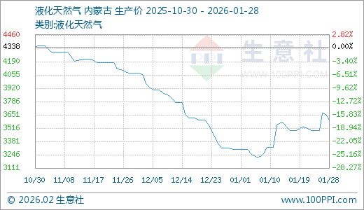 01月28日液化天然气3598.00元/吨 5天上涨3.04%