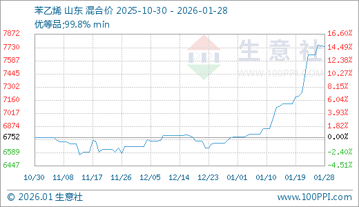 01月28日苯乙烯7740.00元/吨 10天上涨8.68%