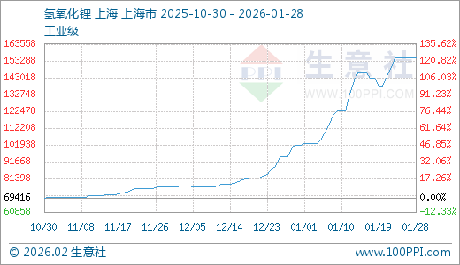 01月28日氢氧化锂155000.00元/吨 10天上涨8.39%