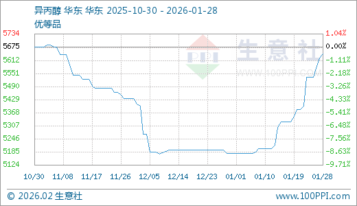 01月28日异丙醇5641.66元/吨 10天上涨5.95%