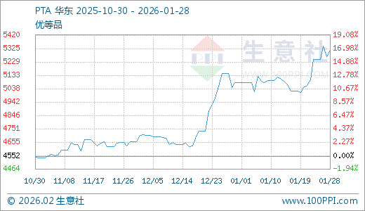 01月28日PTA价格5314.75元/吨 10天上涨5.88%