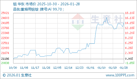 01月28日铝24265.00元/吨 60天上涨13.07%
