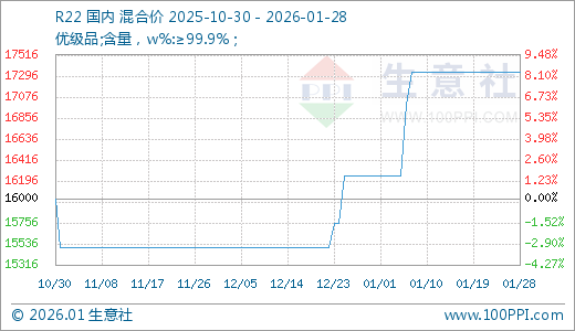 01月28日R22价格17333.33元/吨 60天上涨11.83%