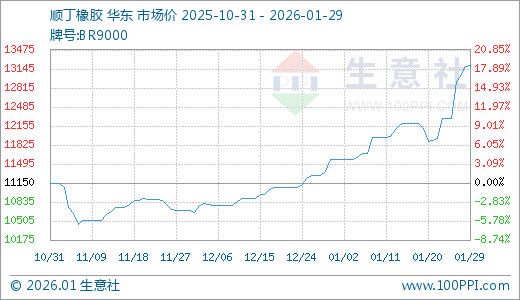 01月29日顺丁橡胶13200.00元/吨 5天上涨7.49%