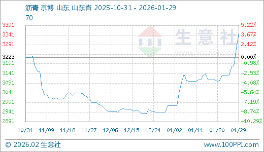 01月29日沥青3350.00元/吨 5天上涨6.92%