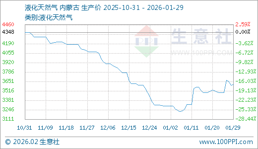 01月29日液化天然气3606.00元/吨 5天上涨3.26%